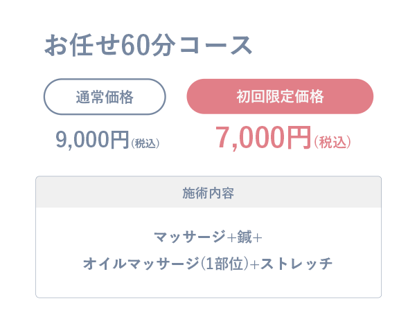 • オイルマッサージ —— 各¥3,000